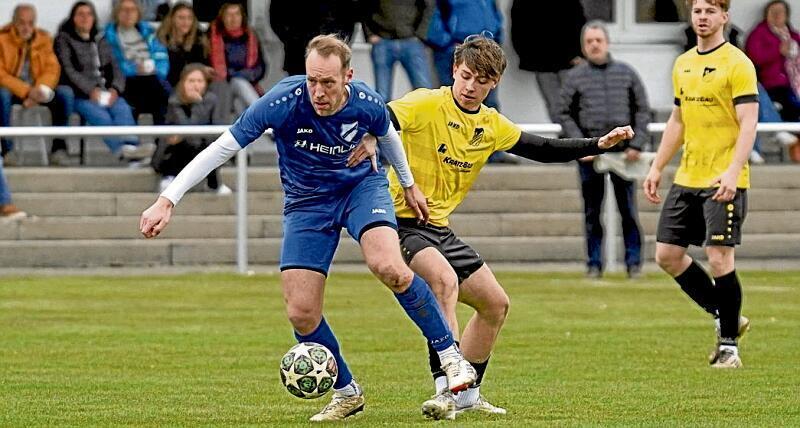 Die SG Niederhofen/Hausen konnte Meisterfavorit SC D.L.P. am Sonntag nicht stoppen. Am Ball Niederhofens Michael Meyr, gegen Jonathan Hänlein vom SC DLP (rechts). Foto: Szilvia Izsó