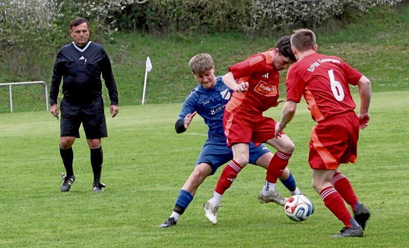 23. März 2026 | Quelle: Rieser Nachrichten Der Tabellenführer baut den Vorsprung aus. Sportclub D.L.P. gewinnt mit 2:0 und profitiert von der Punkteteilung im Verfolgerduell. Dabei gleicht Schwörsheim-Munningen gegen Möttingen/Mönchsdeggingen in letzter Sekunde aus. Nach ausgeglichenem Beginn übernahm die Heimelf die Kontrolle und kam durch Moritz Straßners Lattenkopfball (7.) und Tomek Ulrichs abgefälschten Schuss an den Pfosten (12.) zu zwei dicken Torchancen. Beim nächsten Versuch von Ulrich traf dieser mit einem klasse Weitschuss zur 1:0-Führung (16.). Jonathan Hänleins schöner Lupfer wurde von Gäste-Tormann Richard Sulcz stark entschärft (28.), gegenüber parierte Heim-Keeper Steffen Wurm gegen Marco Meyer (39.). In der zweiten Halbzeit scheiterte auch Maximilian Beck am Pfosten des Gästetores (52.). Danach wurden die Gäste stärker, konnten sich jedoch keine Torchancen erspielen. Einen schönen Spielzug über Pascal Heinze und den gedankenschnellen Marco Schwarz schloss Maximilian Beck souverän zum 2:0 ab (69.). Die SG gab nicht auf und kam durch Markus Käser und Jakob Hertle zu Abschlüssen, doch Wurm ließ keinen Treffer zu. In der Schlussminute parierte Sulcz noch reaktionsschnell Becks Elfmeter (90.). |